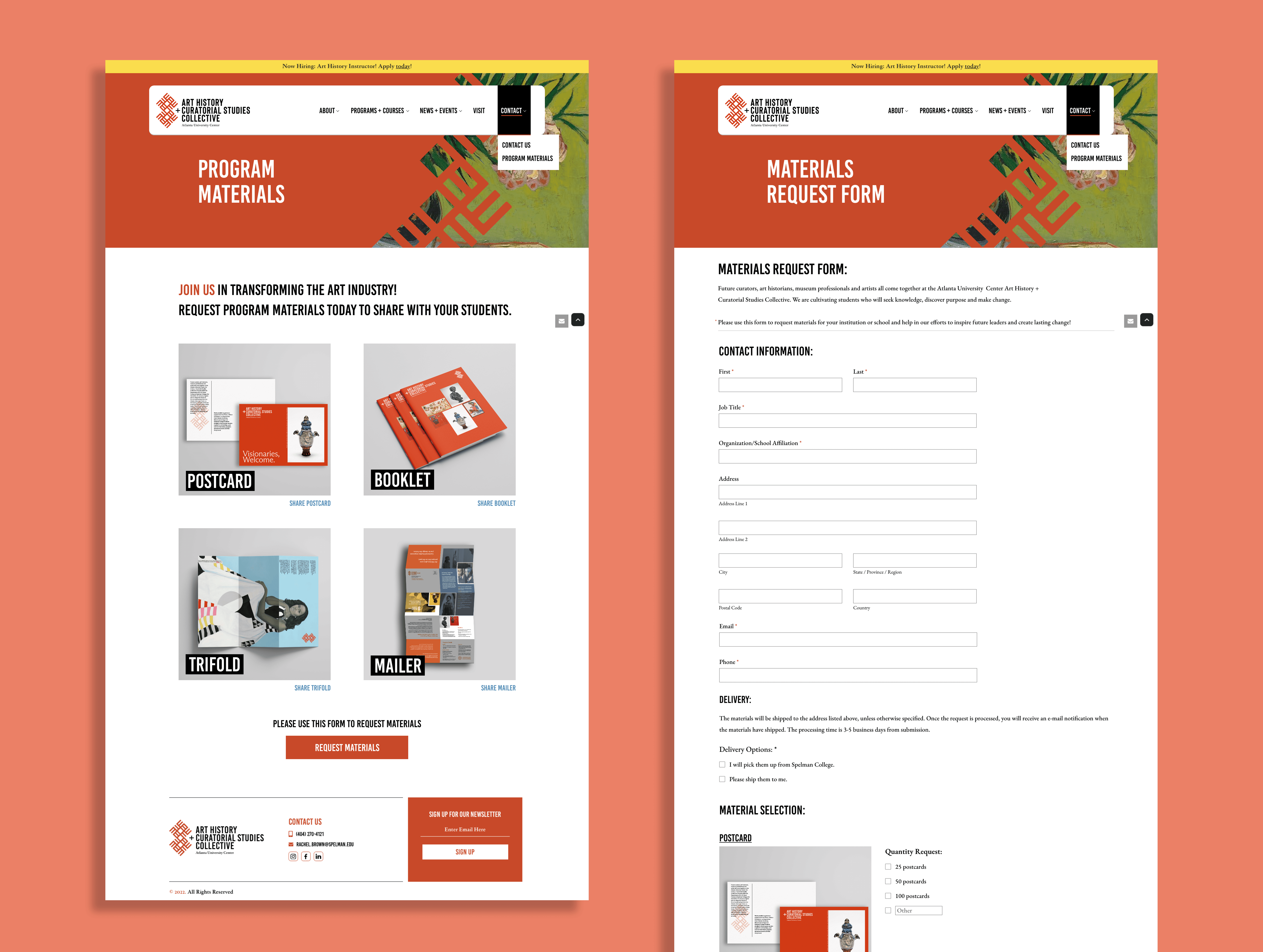 In this project my personal role was adapting the local style and brand guidelines of the current website that was currated from the Nebo Agency and created two more page options that were handed down from our UX design team. This includes a program materials page which introduces the different options available to order informational programs, and a materials request form that introduces a form feature to request the programs above. Afterwards I worked closely with the Front and Back end team to make sure it’s within specifications of the brands Identity and values.